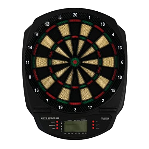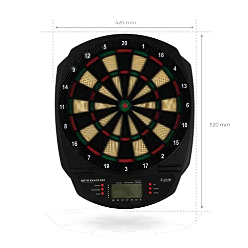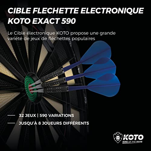 Il bersaglio elettronico classico KOTO Exact 590 può essere utilizzato da 8 giocatori diversi contemporaneamente. Possono giocare da soli contro il computer, uno contro l'altro, ma possono anche giocare a giochi diversi in squadre di due, tre o quattro giocatori.