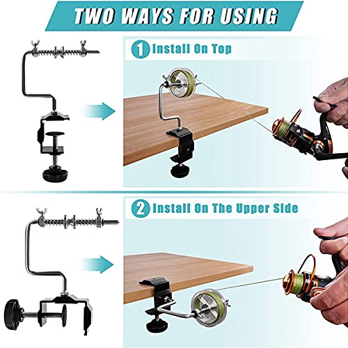 2 MODI DI UTILIZZO: lo spooler del mulinello da pesca ha due modi di utilizzo. Molla di fissaggio a doppia testa. Stringere a sinistra e allentare a destra. Può essere montato verticalmente o orizzontalmente ovunque sia possibile fissarlo. Che tu sia a casa, in barca, in camion, ecc., rendi la pesca più comoda