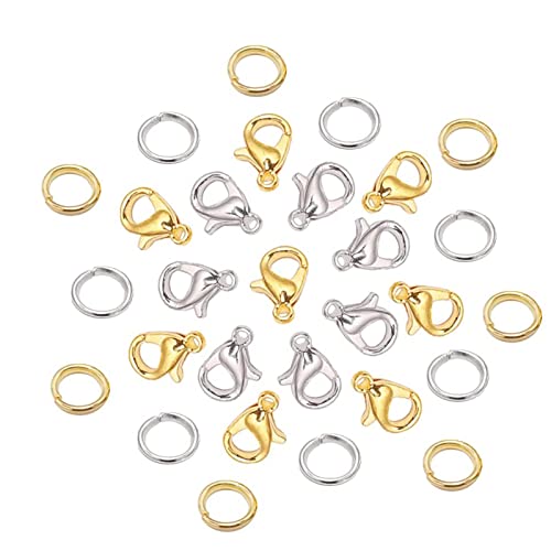 Il pacchetto include: Il pacchetto include 50 fermagli di aragosta d'oro, 50 fermagli d'argento di aragosta, 100 anelli di salto d'oro e 100 anelli di salto d'argento. La quantità è abbastanza grande da soddisfare le tue esigenze quotidiane.