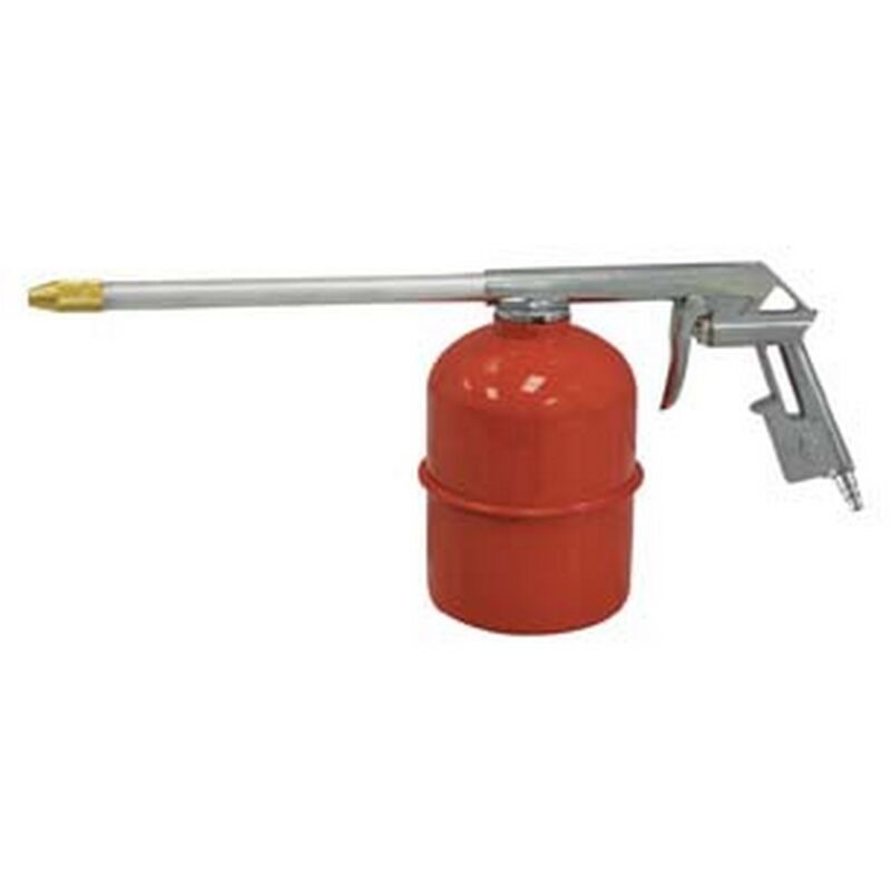 Corpo alluminio nichelato - ugello regolabile - serbatoio acciaio verniciato lt.1 - canna esterno metallo interno nylon - tubo pescante acciaio - regolatore consumo aria - max bar 10