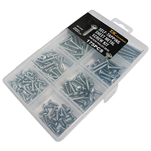 T.K.Excellent autofilettanti, viti a testa Phillips Drive Sheet Metal Screw Assortment kit,175 pezzi