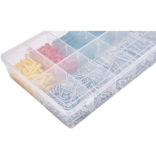 Il kit include: ancore E5, E6, E8, #6, #8, #10, #12, #12, #14, viti autofilettanti a testa tonda phillips (ANSI), #15,2x2,5, #25,4x3,8, e una custodia in plastica.