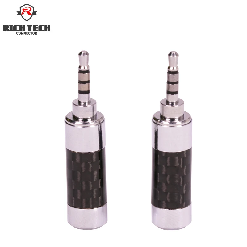 2pcs Excellent Carbon Fiber Shell 2.5mm Jack Connector Nickel Plated 4Poles TRRS 2.5mm Plug DIY Wire Adapter