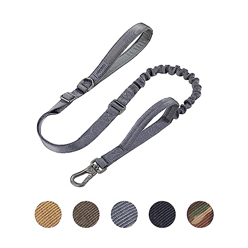 EXCELLENT ELITE SPANKER Guinzaglio tattico con Cordino Elastico Guinzaglio Militare Regolabile con Cordino Elastico a sgancio rapido Corda con 2 impugnature di Comando(Grigio)