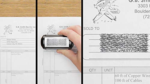 Questo timbro di protezione contro il furto di identità elimina la necessità di un trituratore rumoroso e costoso, o può essere utilizzato in combinazione con un trituratore per una maggiore sicurezza