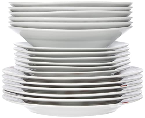 Servizio composto da: 6 piatti piani diamentro cm.23, 6 piatti fondi cm.20, 6 piatti frutta cm.19.