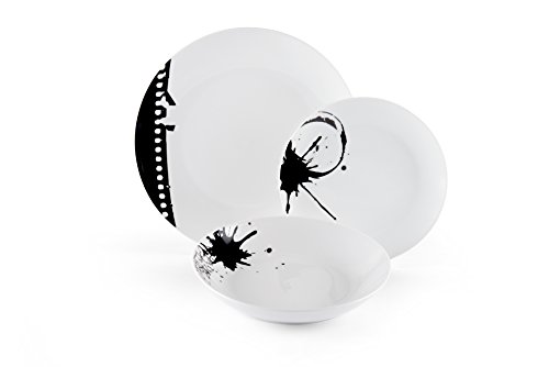Excelsa Ciak Servizio di Piatti 18 Pezzi, Porcellana, Bianco/Nero