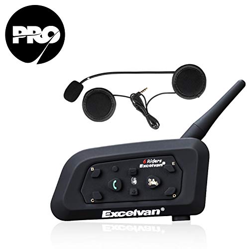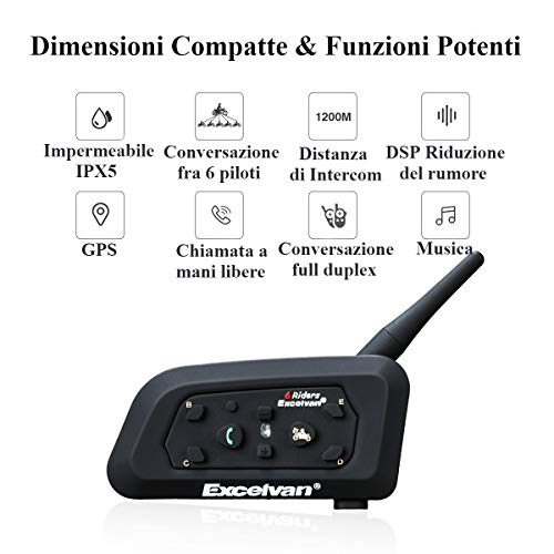 Excelvan - V6 PRO 1200m fra 6 Piloti, Cuffie Stereo e Microfono Interfono Bluetooth per Casco Moto, Impermeabile (un pacco)
