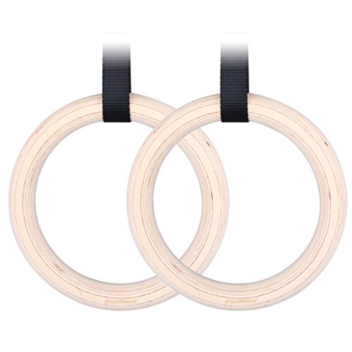Excelvan Gym, anelli da ginnastica in legno di betulla, regolabili, professionali, ginnastica olimpionica, crossfit, fitness, esercizi di forza