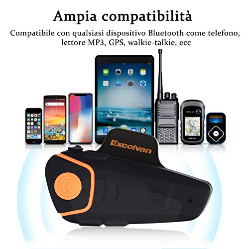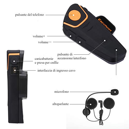 EXCELVAN BT-S2 2 x 1000 m BT Casco Moto Auricolare Bluetooth Auricolare Moto per 2 o 3 Cavalieri e Cavo Audio 2mm per Lettore GPS / MP3 Hands Free & FM Radio (2 Pezzi)