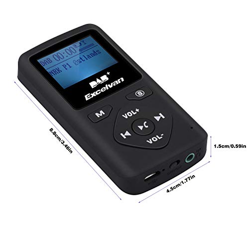 Excelvan DAB/DAB + Radio Portatile Pocket DAB/DAB + Radio Digitale e FM con Chiamate a vivavoce Bluetooth e Lettore MP3, Cuffie e Cavo di Ricarica USB inclusi,Nero