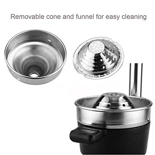 L'imbuto e il colino sono facilmente rimovibili per una facile pulizia.