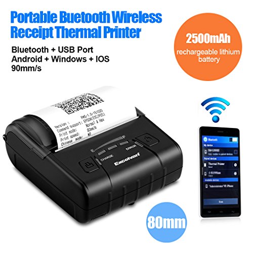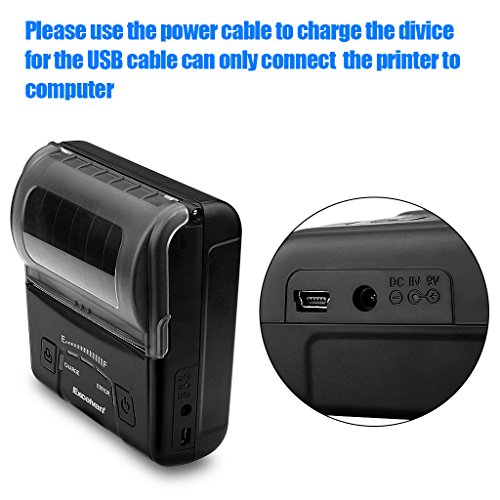 EXCELVAN E300 Stampante Termica Portabile 80mm Bluetooth Wireless per Android Windows, Nero