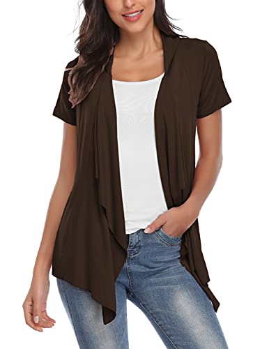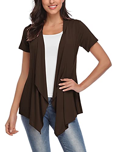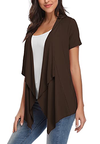 EXCHIC Abiti Manica Corta a Maniche Corte con Bordo Anteriore Aperto da Donna (2XL, caffè)