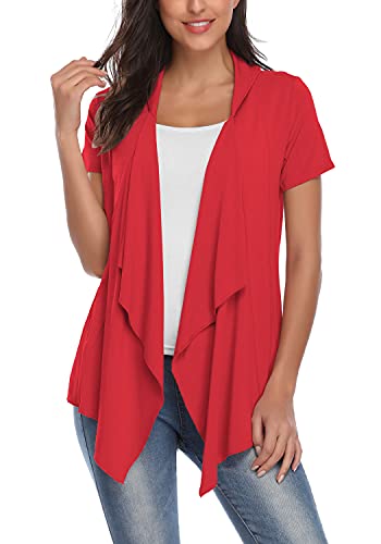 EXCHIC Abiti Manica Corta a Maniche Corte con Bordo Anteriore Aperto da Donna (S, Rosso)