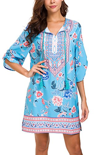 Design: scollo a V, stampa floreale vintage, stile etnico alla moda, grandi cuciture, orli perfettamente foderati, abito tunica boho, non passa mai di moda, adatto per primavera, estate, autunno. Nel frattempo, se il vestito è troppo corto per te, puoi indossarlo come top a tunica con leggings o jeans.