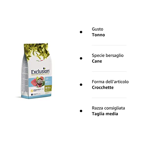 Le crocchette Exclusion mediterraneo monoprotein noble grain puppy medium tonno