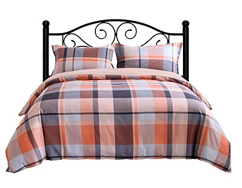 Exclusivo Mezcla Set copripiumone in Microfibra Spazzolata Reversibile in 3 Pezzi con 2 federe - Doppio Formato (200x200 cm), Tartan Rosa-Arancio
