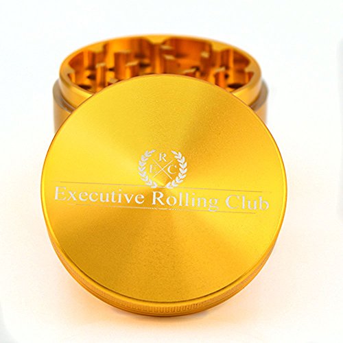 Executive Rolling Club Macinatore in alluminio di grado medico, di lusso, professionale, con chiusura magnetica in terre rare e denti di tigre super affilati (4 pezzi, convertibili a 3 pezzi), dimensioni: 6,35 cm - Gold