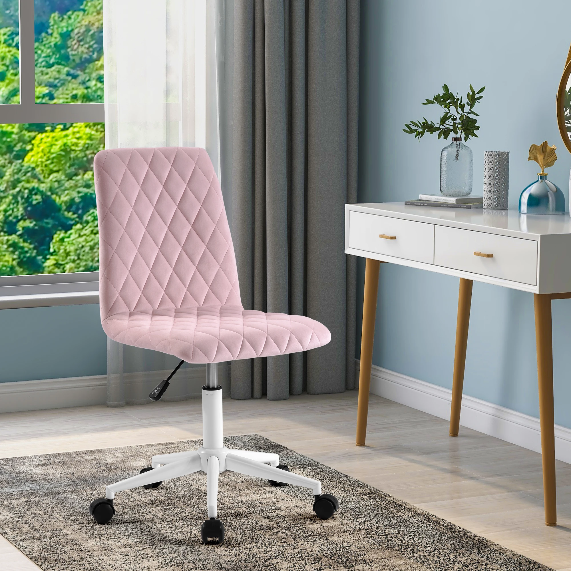 High Back Executive Pink Velvet Office Chair Adjustable Height Swivel Ergonomic Gaming Computer Desk Chairs Armless Bedroom Seat