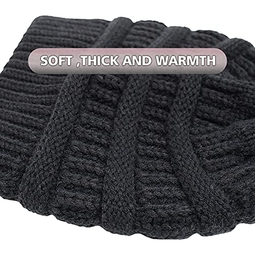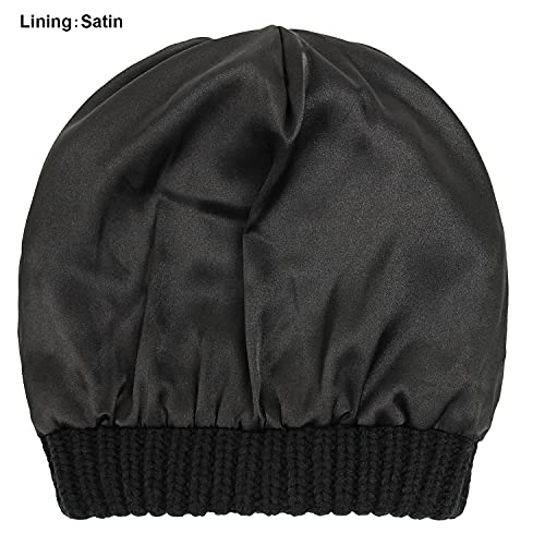 Exemaba Cappello da donna lavorato a maglia, foderato in raso, da donna, con teschio, cappello invernale morbido, Nero, Taglia unica