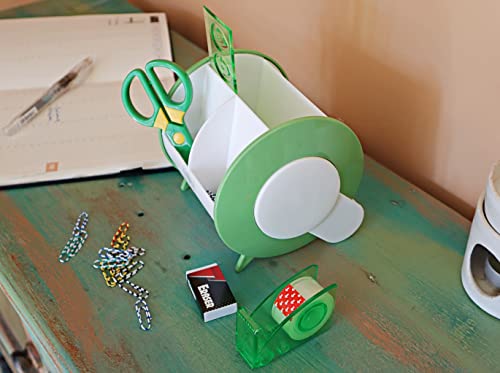 Exerz EX8986 Organizer da scrivania/da scrivania con set di cancelleria - Forbici con dispositivo di sicurezza (NON Affilato), Righelli, Distributore di nastro adesivo, Gomma(Verde)