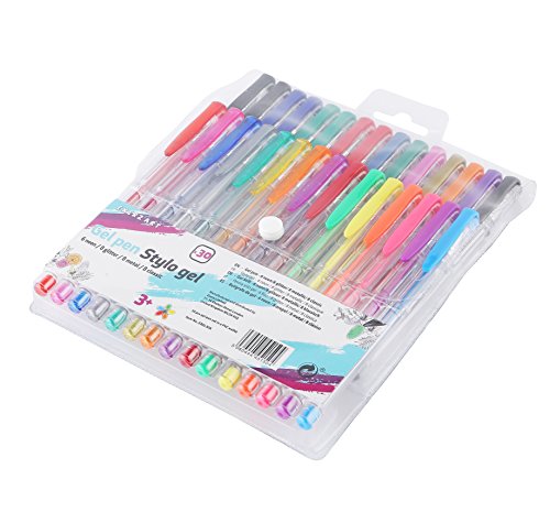 Exerz penne gel colorate 30pezzi in secchio di PVC, penne a sfera punta fina, comprende penne con glitter, neon, neon metallico, neon glitter, pastello, arcobaleno e classiche sfumature