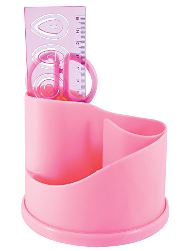 Exerz Portaoggetti da scrivania con forbici di sicurezza (NON Affilate), Righello, Gomma, Graffette set di cancelleria INCLUSO - Organizzatore di cancelleria / Scrivania ordinata (Rosa)