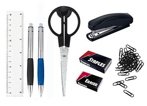 Exerz Portaoggetti da scrivania/Organizer - dimensioni 15 x 13,5 x 9 cm - Riempito con forbici, Pinzatrice, Punti metallici, Penne, Righello, Gomma, Graffette - Organizzatore di cancelleria (Nero)