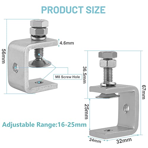 ️【Alta stabilità】: Il morsetto di supporto ha fori filettati M8 sui lati e sul fondo con diversi fissaggi per migliorare ulteriormente la stabilità del morsetto e garantire la forza di serraggio dei morsetti a vite.