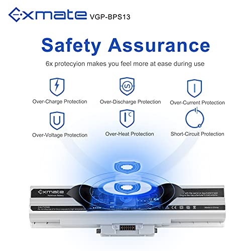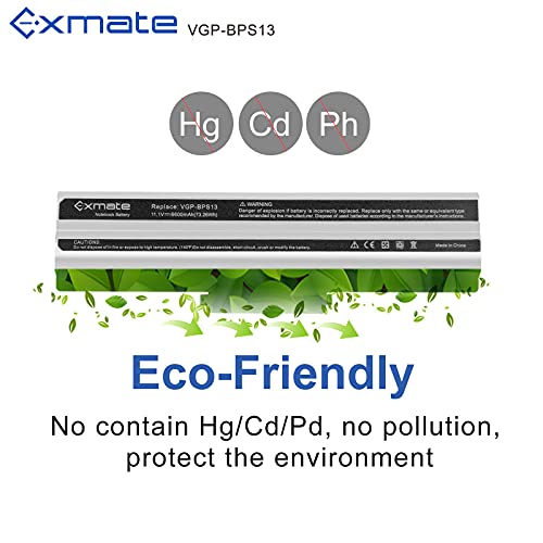 Exmate Batteria 6600mAh VGP-BPS13 VGP-BPS13/S VGP-BPS13/B VGP-BPS13/Q VGP-BPL13 VGP-BPS21 VGP-BPS21A VGP-BPS21B per Sony VAIO VGN-FW SR AW BZ CS NS NW SR Serie