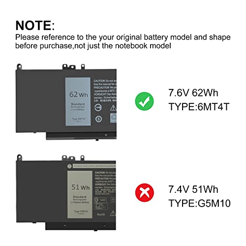 Exmate Batteria 6MT4T 7V69Y TXF9M 79VRK per Dell Latitude E5450 E5470 E5550 E5570(Non Compatibile con 51Wh)