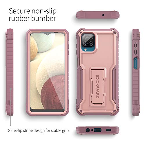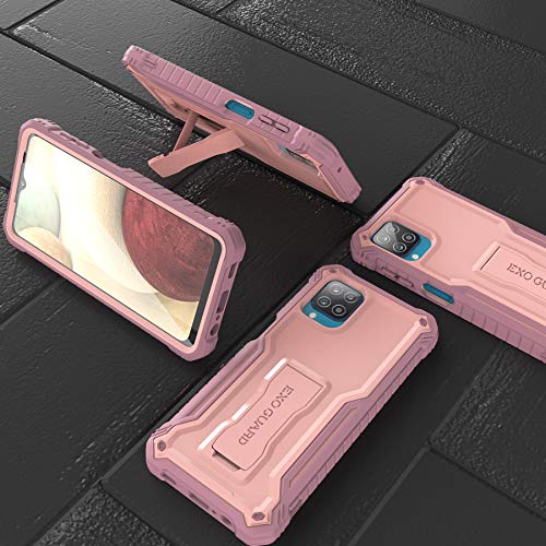 ExoGuard Custodia per Samsung A12 6.5”, Custodia Antiurto con Protezione Dello Schermo e Supporto Cellulare, Cover Completa Del Corpo Antiurto Antipolvere, Rosa