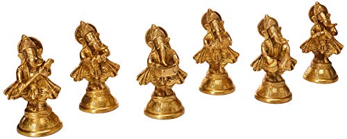 Exotic India Musician Ganesha Statue (Set di Sei), Oro, Dimensioni: 8,1 x 15,2 x 6,6 cm