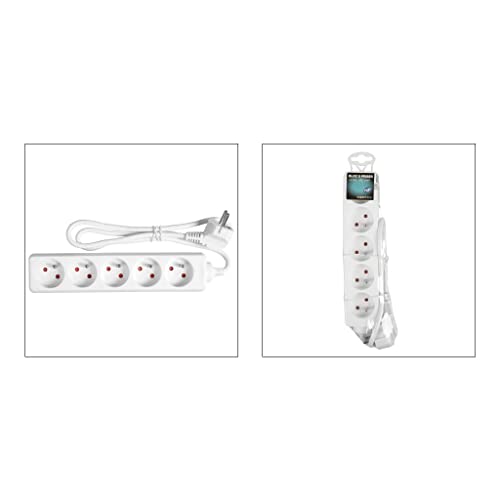 Presa multipla bianca a 5 posti con interruttore 16 A, 3 x 1 mm², con protezione bambini.