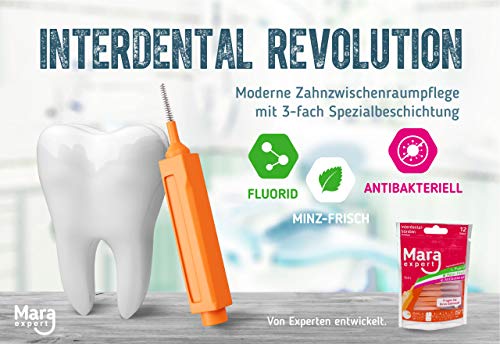 Mara Expert Spazzolino interdentale, spazzolino da denti per interstizi interdentali, al gusto menta, con rivestimento al fluoruro e clorexidina, per un alito fresco, chiedere consiglio al proprio dentista (etichetta in lingua italiana non garantita)
