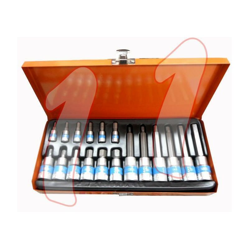 SET DI CHIAVI A BUSSOLA TORX MASCHIO 18 PEZZI. SET DI CHIAVI A BUSSOLA TORX MASCHIO . IL SET SI COMPONE DI 18 CHIAVI TORX MASCHIO DI CUI: 6 CON ATTACCO DA 1/4 CORTE (40mm) DI MISURA: T 8--T 10--T 15--T 20--T 25--T 27-- 6 CON ATTACCO DA 1/2 CORTE ( 55mm) DI MISURA: T 30--T 40--T 45--T 50--T 55--T 60. 6 CON ATTACCO DA 1/2 LUNGHE ( 100mm) DI MISURA: T 30--T 40--T 45--T 50--T 55--T 60-- REALIZZATE IN ACCIAIO CHROME VANADIUM. IL TUTTO IN VALIGETTA DI METALLO.