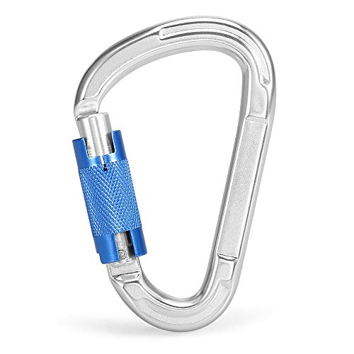 Explopur Porta moschettone - 25KN D-Ring Twist Locking Chiusura Automatica certificata CE Fibbia - Arrampicata Discesa in Corda Doppia Canyoning Amaca Clip di Blocco Oro/Blu Opzionale