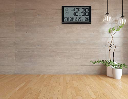 Explore Scientific RDC8001 Orologio da Parete Jumbo Radio-Controllato,visualizza temperatura interna/esterna, 1 Sensore incluso, Previsioni del Tempo ad icone, nero