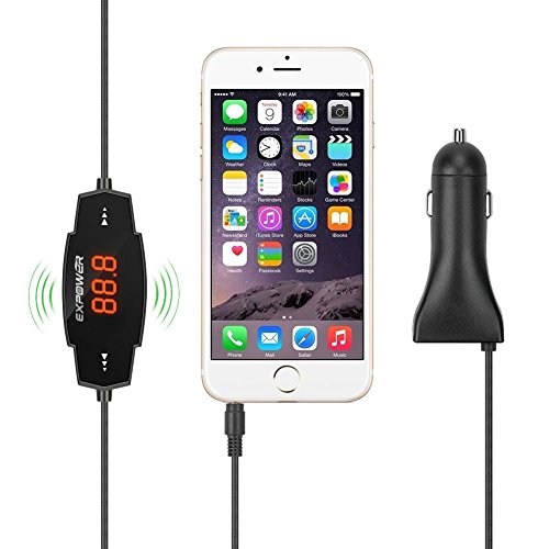 Expower Caricabatteria da Auto Wireless Trasmettitore Radio FM con Cavo di Presa 3,5 mm Caricatore Alimentatore Automobile Cellulari per iPhone 6/5 Samsung Galaxy S6/S6 Edge