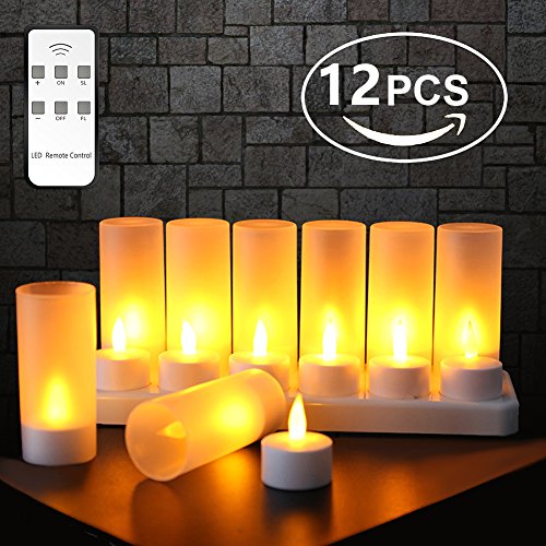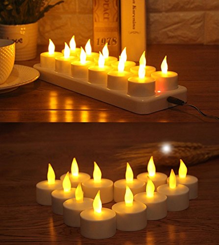 Expower 12 Pezzi Candele Realistiche a Led Senza Fiamma USB Ricaricabile con Telecomando Illuminazione Romantica Decorazione per Party Festa Bar Casa Ideale Regalo Natale per Amici (Giallo)
