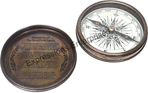 Expressions Enterprises - Bussola tascabile in ottone Robert Frost Poesia Bussola Vintage Nautical Scouts Funzionale