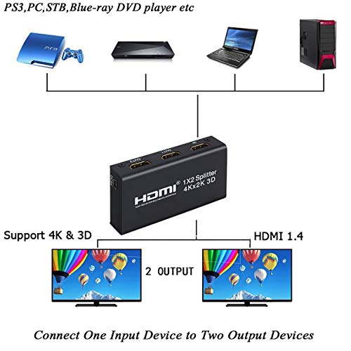 Expresstech @ 1 X 2 HDMI Splitter HDMI Amplifier Distributore 4K 3D 2160P per HDTV PC Sky Box PS2 PS3 PS4 Projector Xbox 360 Blu-ray DVD HD TV