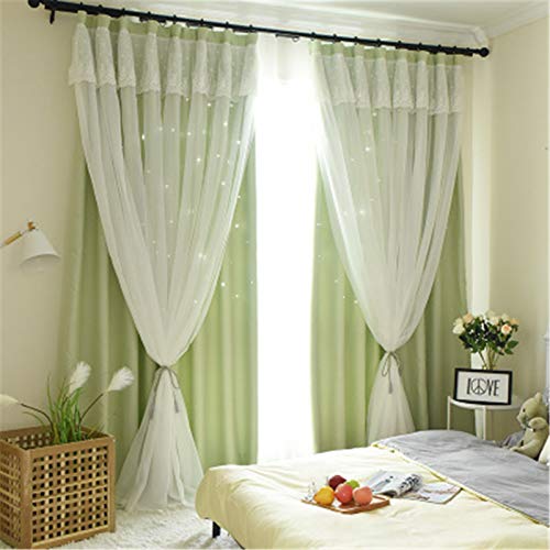 EXQULEG Tenda Blackout a doppio strato, per ragazze, scavare con stelle, stile principessa, per soggiorno, camera da letto, cameretta dei bambini, colore verde, 240 x 132 cm (altezza x larghezza)