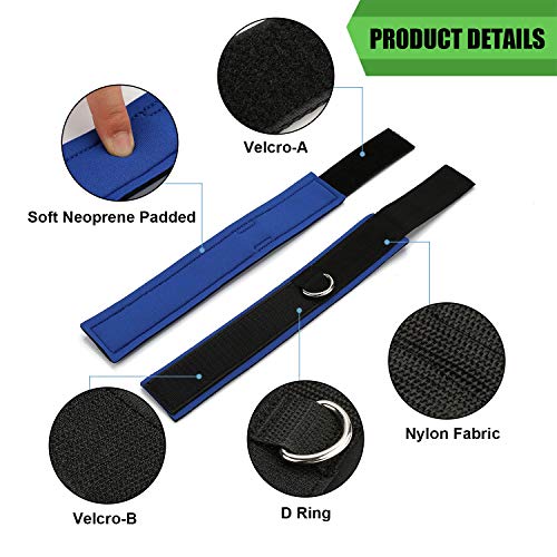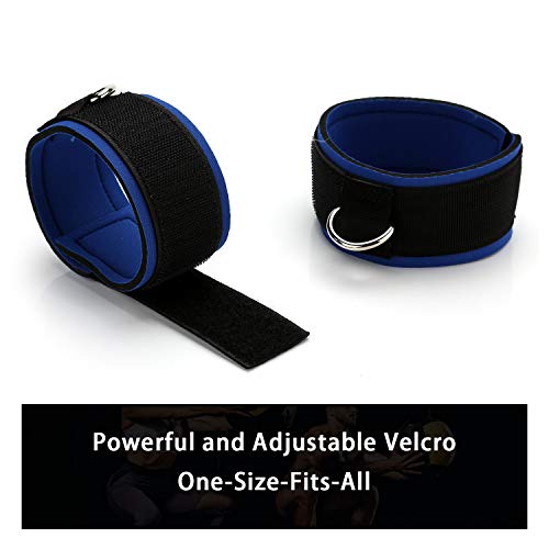 Exreizst Polsini alla Caviglia - Cinturini alla Caviglia - Cinturini Imbottiti in Neoprene Morbido con Anello a D - Cavo Regolabile Macchine Cinghie per Gambe Esercizio Fitness (Blue)