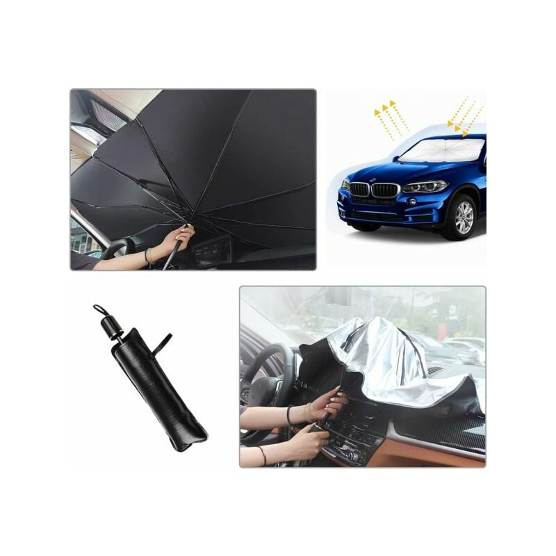 Parasole per auto parabrezza anteriore ombrello portatile pieghevole 130x75cm Parasole auto ideale per mantenere la tua auto fresca nelle calde giornate estive! Caratteristiche tecniche: Parasole per auto Ad ombrello Facile da usare Protezione dai raggi UV Custodia in ecopelle Materiale: poliestere Colore: nero e silver Dimensioni: 130 x 75 x 34 cm circa Peso: 0.325kg La confezione contiene: N. 1 Parasole Nr. 1 Custodia