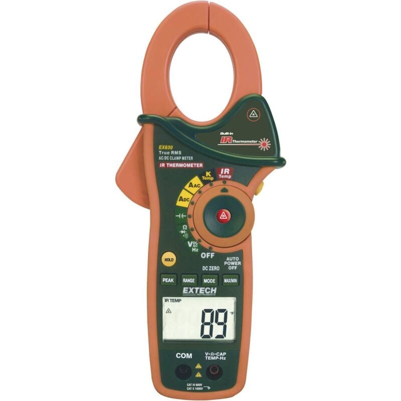 Dettagli tecnici Altezza 270 mm Calibrato di fabbrica senza certificato Dimensioni (L x A) 110 mm x 270 mm Indicatore (digitale/meccanico/analogico) digitale Interfacce nessuna Intervallo di misura A / AC max 1000 A Intervallo di misura A / AC min. 0.1 A Intervallo di misura resistenza 0.1 Ω - 40 MΩ Larghezza 110 mm Misura di corrente AC/DC Multimetri Caratteristiche Termometro IR Peso 386 g Precisione (più / meno) 1.5 % Resistenza interna CA 10 MΩ Resistenza interna CC 10 MΩ Tensione di alimentazione (dettagli) Batteria da 9 V Tipo prodotto Pinza amperometrica Pinza amperometrica EX-830 La pinza amperometrica con termometro a infrarossi incorporato. È ora possibile misurare senza contatto e con un singolo apparecchio la temperatura e l'intensità di corrente di cavi, barre conduttrici ecc. L'apparecchio, di fattura robusta, dispone di un rivestimento in gomma morbida pressofusa ed è dotato di una selezione automatica del campo e di una funzione Peak Hold rapida per misurazioni fedeli