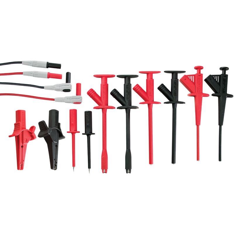 Descrizione Il kit di cavi di misura elettrici master Extech TL831 è composto da dieci pezzi di livello industriale. Il kit include cavi di misura in silicone co-stampati TL726, set di sonde appuntite di test elettronico TL747 e set di clip di tipo a stantuffo per impieghi pesanti TL741. Questo kit include inoltre set di pinzette di tipo a stantuffo per impieghi pesanti TL742, set di clip di tipo a stantuffo industriali TL740 e set di clip a coccodrillo grandi TL708. Il kit di cavi di misura elettrici master Extech TL831 è riposto in un pratico astuccio.