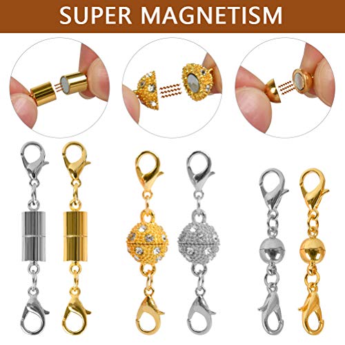 【Varie dimensioni e stili】 Viene fornito con 6 chiusure magnetiche per gioielli e 8 extender per collana. Lunghezza degli espansori: 3 cm, 5 cm, 7,5 cm, 10 cm. Chiusure per gioielli 3 stili: sfera di strass, sfera e cuboide, 2 colori: argento e oro, 7 pezzi ciascuno, per soddisfare le diverse esigenze.
