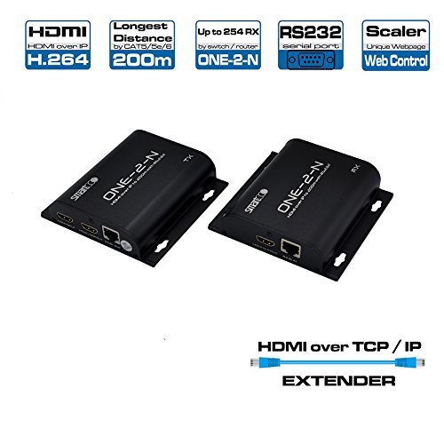 H.264 HDMI extender kits (200m HDMI extender) HDMI extender over IP One to many up to 200 meters with RS232 and webpage control - SL-EX200 TRANSMITTER & RECEIVER compressed HDMI to TCP/IP transmit over CAT5/5e/6/7 cable, with Video delay and loss - British power supply